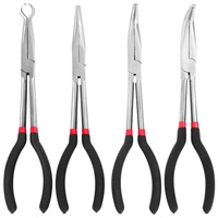 4PCS Long Needle Nose Pliers Set 11 Inch Carbon Steel with Rubber-Coated Grips for Automotive Repair Jewelry Making Crafting – 4 PCS
