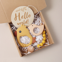 4pcs gift box set and baby milestone set Baby Photo Shoot Props Kit wooden bird shape silicone teether charm