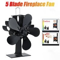 5 Blades Fireplace Fan Heat Powered Stove Fan Wood Log Burner Eco Quiet Hot Air Fan Heater Home Efficient Heat Distribute $24.63