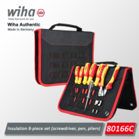 WIHA 80166C 7-in-1 Insulated Tool Set with Voltage Test Pen Plier Tool Bag and Phillips & Slotted Screwdrivers Repair Hand Tools