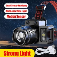 Usb Rechargeable Headlamp Super Bright Head Lamp Motion Sensor Headlight 5 Lighting Modes Zoomable Head Lights Forehead Light