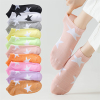 5 Pairs Women Star Print Ankle Socks White Lolita Style Kawaii Short Socks Cute Breathable Cotton Candy Color $4.17