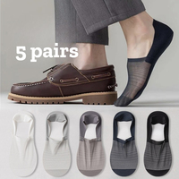 5pairs Men’s Summer Ultra-thin Invisible Elastic Silicone Anti Slip Boat Socks with Mesh Breathable and Comfortable Men’s Socks $5.83
