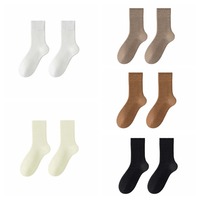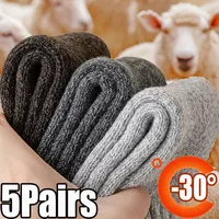 5 Pairs 100% Wool Socks Winter Men and Women Socks Knitted Mid-Calf Warm Wool Solid Color Short Socks