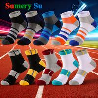 5 Pairs/Lot Sport Socks Men Running Cotton Colorful Stripe Summer Short Ankle Gym Athletic Outdoor Travel Casual Daily Wear Male