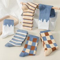 1/5 Pair Women Socks Spring Autumn Retro Style Men Couple Cotton Socks Flower Stripe Plaid Pattern Solid Colorful Socks