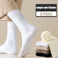 5 Pairs Autumn and Winter Fashion New Style with Plush and Thick Warm Men Calf Socks Simple and Versatile Looped High Tube Socks