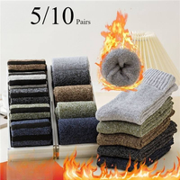 5/10 Pairs Men’s Winter Warm Socks, Thick Towel Mid-Calf Socks, Anti-Cold Snow Boots Socks Elastic Solid Color man