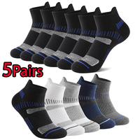 2024 New Men Ankle Socks 5 Pair High Quality Cotton Athletic Cushioned Breathable Casual Sports Socks Male Short Socks Size35-48 $10.44