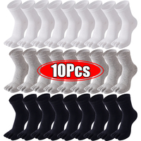 10Pcs=5Pairs Comfortable Five Fingers Socks Men Cotton Tabi Toe Socks Crew Breathable Sports Running Sock Black White Long Socks