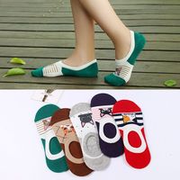 5 Pairs Women Cute Invisible Socks Spring Summer Comfortable Cartoon Cat Striped Happy Socks Harajuku Kawaii Casual Boat Socks $5.35