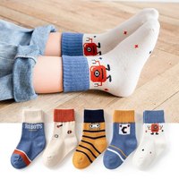 5Pairs/Lot Cartoon Kids Socks Casual Baby Boys Cotton Stripe Spring Autumn Toddler Knitted Children Socks For 1-8Years $4.13