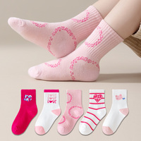 5 pairs of spring and summer children’s socks for girls, pink heart striped cute casual socks $4.06