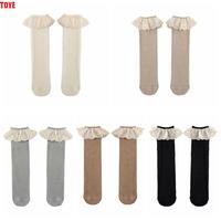 5Pairs Ruffled Edge Baby Calf Socks Baby Lace Trim Long Tube Infant Cotton Stockings Toddle Stripe Cartoon Above Knee Socks $9.38