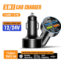 5 Ports USB Car Charger PD QC3.0 USB-C Fast Charging Car Phone Adapter For iPhone Samsung Huawei Xiaomi 12-24V LED Display $3.23