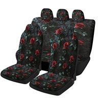 Red Roses On Black Designed Car Seat Cover Set For Most Cars, Fashion Novelty Car Seat Protector Covers Full Set, Universal Car