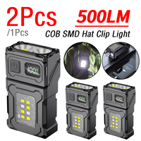 1/2Pcs 500LM COB SMD Portable Work Light USB Charging Hat Clip Light Rotatable Powerful Mini Torch for Camping Walking Fishing $6.31
