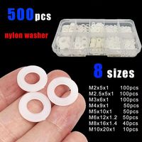 500pcs/1 Set Nylon Washer Flat Assortment Set with 8-size Safety Plates M2 M2.5 M3 M4 M5 M6 M8 M10 Nylon Sealing Washers $2.58