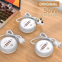 50W PD Charger 6 Ports Type-C Fast Charging Power Strip Wall Adapter With Touch LED Light For iPhone Xiaomi Huawei USB Socket $6.84