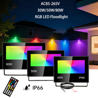 30W 50W 80W Outdoor RGB LED Floodlight AC85-265V IP66 Waterproof Spotlight Dimmable for Garden Landscape Street Lighting Decor