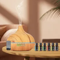 550ml Aroma Diffuser with Remote Control Wood Grain Timer, Cool Mist Humidifier for Large Room with 6 Oil Set