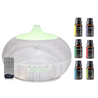 550ml Wood Grain Essential Oil Diffuser Remote Control, Ultrasonic Air Humidifier, 7 Color LED Light & 6 Oils