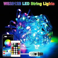 USB LED Smart app RGBIC Fairy String Lights Strip WS2812B 5V Waterproof With 24Keys Remote Bluetooth Music Control 5M 10M 15M $7.65