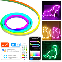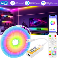 5m 10m Smart Neon Strip RGB LED Neon Light Strip Kit IP67 Waterproof 24V 12W/M Ra92 Flexible LED Strip APP & Remote Control – 5M