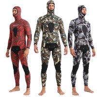 2 Pieces Neoprene Wetsuit 5mm Camouflage Long Sleeve Fission Hooded Submersible Men Keep Warm Scuba Diving Suit