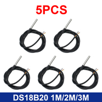 5pcs DS18b20 temperature probe temperature sensor 1M 2M 3M DS1820 Stainless steel package Waterproof 18B20 100cm/200cm/300cm $5.74
