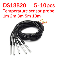 5-10PCS DS18b20 temperature probe temperature sensor 1M 2M 3M 5M 10M DS18B20 Stainless steel package Waterproof 18B20 5PCS 10PCS $7.71