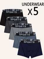 5pcs Men’s Underwear / Fashion Breathable Soft Comfy Skin-Friendly Elastic Waistbands Shorts Boxer Briefs – #01 L