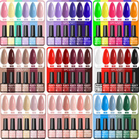 Rainbow Ghini 8ml 6Pcs/Set HEMA TPO Free Nail Polish Color Gel Nail Polish Set Bright Red-Purple Scheme Solid Color Nail Gel $6.46