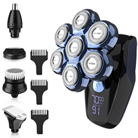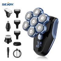 6-in-1 Men’s Bald Head Electric Shaver and Trimmer Kit Waterproof and Rechargeable Rotary Shaver with 9 Floating Blades Beard Nose Ear Hair Clipper Facial Brush Quick Charging – #B