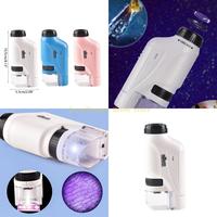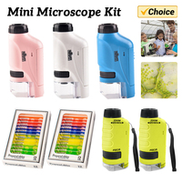 Portable Kids Pocket Mini Microscope 60x-120x LED Lighted Handheld Microscope Student Science Experiment Equipment Set Gift