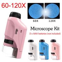 Handheld Microscope Kit Lab LED Light 60X-120X Lab Mini Handheld Educational Microscope With LED Light Kids Children Science $4.27