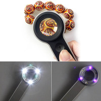 30X 60X Mini Pockets Jewelry Magnifying Magnifier UV LED Light Portable Microscope Loupe Optical Lens for Coin stamp money