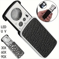 30X 60X 90X Pocket Jewelry Magnifier with UV LED Light Slide Out Magnifying Glass Optical Lens Loupe for Diamonds Coins Stamps