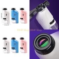 D84F Pocket Microscope 60x-120x Handheld Mini Microscope with LED Lighted Colorful Microscope for Education Exploring