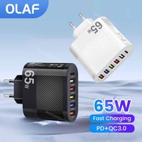 PD 65W USB Charger Fast Charger 6 Ports Type C Mobile Phone Charger For Iphone 16 15 Pro Max Xiaomi Huawei Samsung Quick Charger $3.58