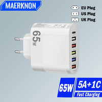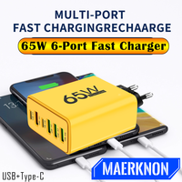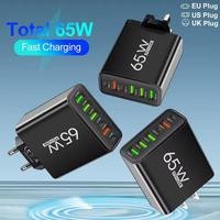 PD 65W USB Charger Fast Charger 6 Ports Type C Mobile Phone Charger For Iphone 16 15 Pro Max Xiaomi Huawei Samsung Quick Charger $3.63