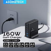ASOMETECH 160W GaN USB C Charger 6 Port USB Desktop Fast Charge Station 65W 45W PPS PD Charger For Laptop iPhone 17 iPad Samsung $36.12