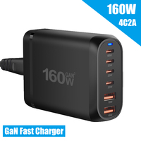 Total 160W GaN 6-Port USB Desktop Charger USB Hub QC PD 65W Fast Charger For iPhone 15/Samsung/Tablet 4C2A Adapter Portable $22.43