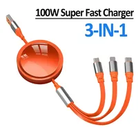3-in-1 100W Fast Charging Cable Portable Retractable USB To Type-C Micro Charger Cable For iPhone Samsung Xiaomi Huawei 1.2M $2.85