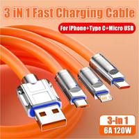 3 in 1 120W Super Fast Charging Cable 6A Type C Micro USB Data Cord Phone Charger Quick Charge Cable For iPhone Samsung Xiaomi $2.73