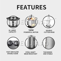 Meat grinder 6L liter electric stainless steel meat beater, household garlic paste chili cooker