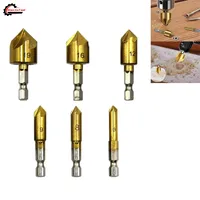 6Pcs HSS 1/4″ Hex Shank Chamfer Countersink Chamfer Drill Bit 90 Degree Wood Chamfering Cutter 6mm-19mm Metal Drills
