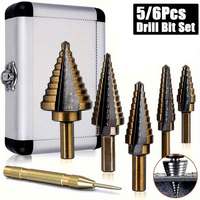 HSS 4241 Cobalt Step Drill Bit Set Metal Drilling Hole Tools, 5/6Pcs Cone Drill Bits for Metal Iron Aluminum Copper Steel & Wood