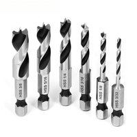 6pcs HSS SAE Brad Three Point Stubby Drill Bit Set for Wood 1/4-Inch Quick Change Hex Shank Woodworking Tool Set