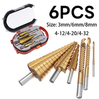 6Pcs Step Saw Drill Bit Set HSS Titanium Drill Bits Kit 4-12 4-20 4-32mm 3 6 8mm Drilling Hole Cutter Tools for Metal Iron Wood $8.00